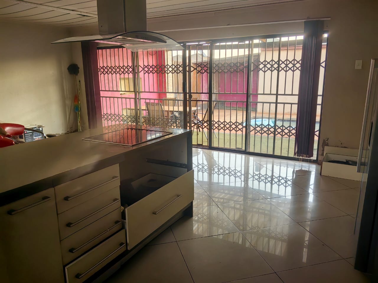 Discover this promising residential property located in the tranquil suburb of Elim, Louis Trichardt, offering a substantial 1500 sqm erf. The home presents a solid foundation with modern architectural elements and a covered parking area, providing an excellent opportunity for prospective homeowners to infuse their personal style and undertake desired upgrades. The interior features spacious living areas, including a dedicated lounge and dining room, both benefiting from ample natural light. The kitchen is equipped with a modern island, an integrated hob, and an extractor fan, complemented by easy-to-maintain tiled flooring. Large sliding glass doors enhance the flow, connecting the indoor spaces to the potential for outdoor enjoyment. This residence comprises four well-proportioned bedrooms, some featuring comfortable hardwood-style flooring and air conditioning units for climate control. The property includes two bathrooms, one of which is an ensuite, offering both a corner bathtub and separate walk-in showers. While functional, these spaces present an ideal canvas for modernisation to create contemporary sanctuaries. Outdoor amenities include a single garage and generous parking for up to four vehicles, ensuring convenience for residents and guests. The expansive erf size provides considerable scope for developing a bespoke garden, outdoor entertainment areas, or further enhancements to suit a family's needs. Security is addressed with robust security gates and window bars, contributing to a secure living environment. Situated in Elim, a peaceful residential area within Louis Trichardt, this property offers a serene lifestyle while maintaining accessibility to local amenities and the broader Limpopo region of South Africa. It represents a valuable investment for those seeking a home with significant potential for customisation and appreciation. Key Features: * 4 Bedrooms, 2 Bathrooms (1 Ensuite) * 1 Kitchen, 1 Dining Room, 1 Lounge * 1 Garage, 4 Parking Spaces * Generous 1500 sqm Erf Size * Modern Kitchen Island with Hob * Air Conditioning in some bedrooms * Security Gates and Window Bars * Ample Natural Light * Opportunity for Modernisation