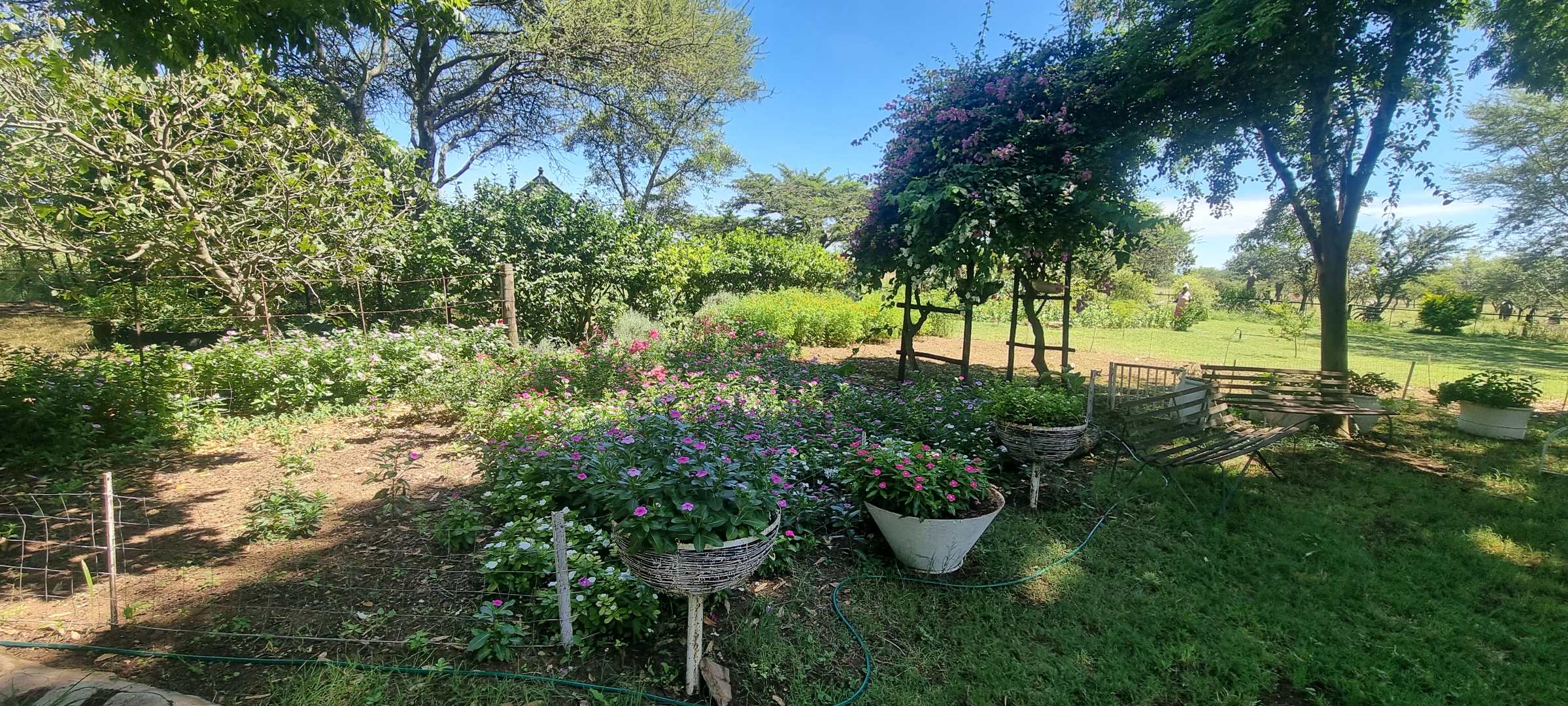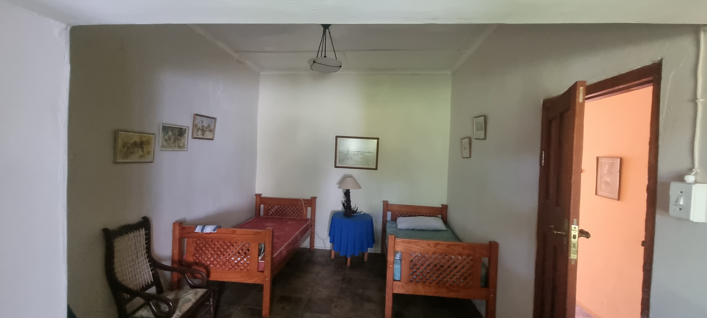 Water is abundant with 2 natural ground dams and a borehole feeding the house, gardens and 9 camps with irrigated cribs.