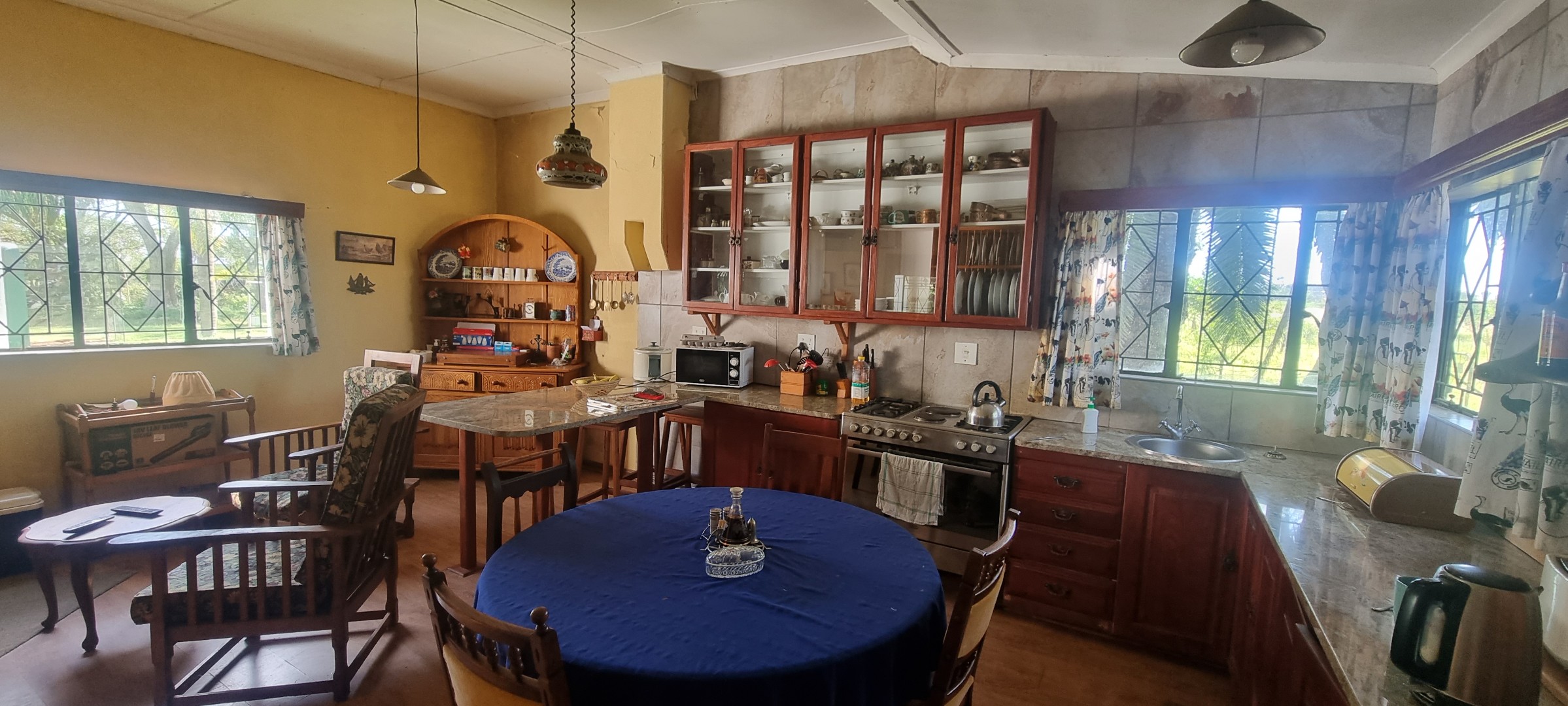 The charming main house consists of 4 bedrooms, 2 and a half bathrooms, a cosy kitchen with beautiful built-in cupboards, scullery and a separate laundry, dining room, the study also with exquisite woodwork, a lounge with fireplace, and a proper farm 'stoep' to enjoy afternoon coffee. A small office outside is ideal for servicing customers.