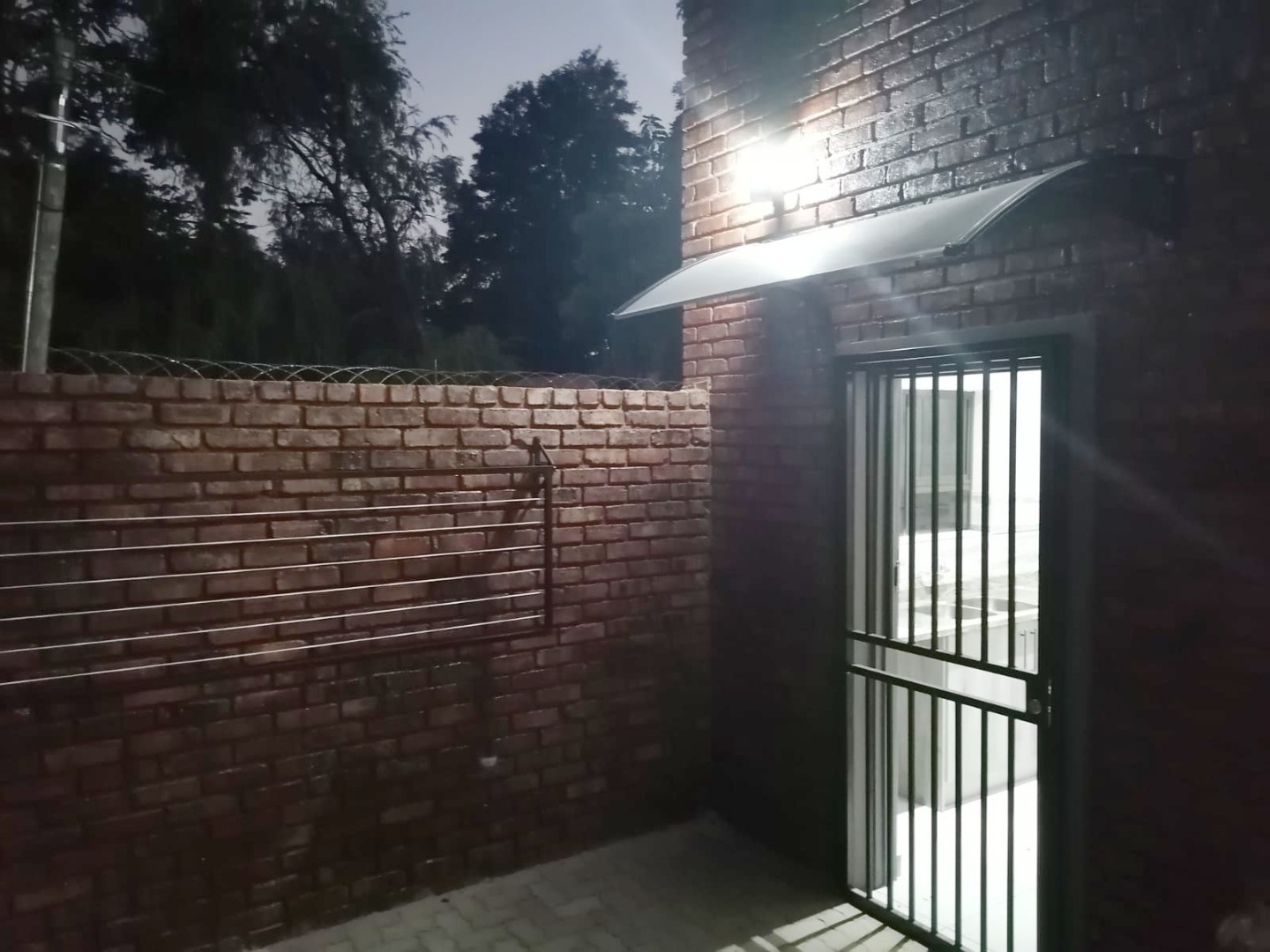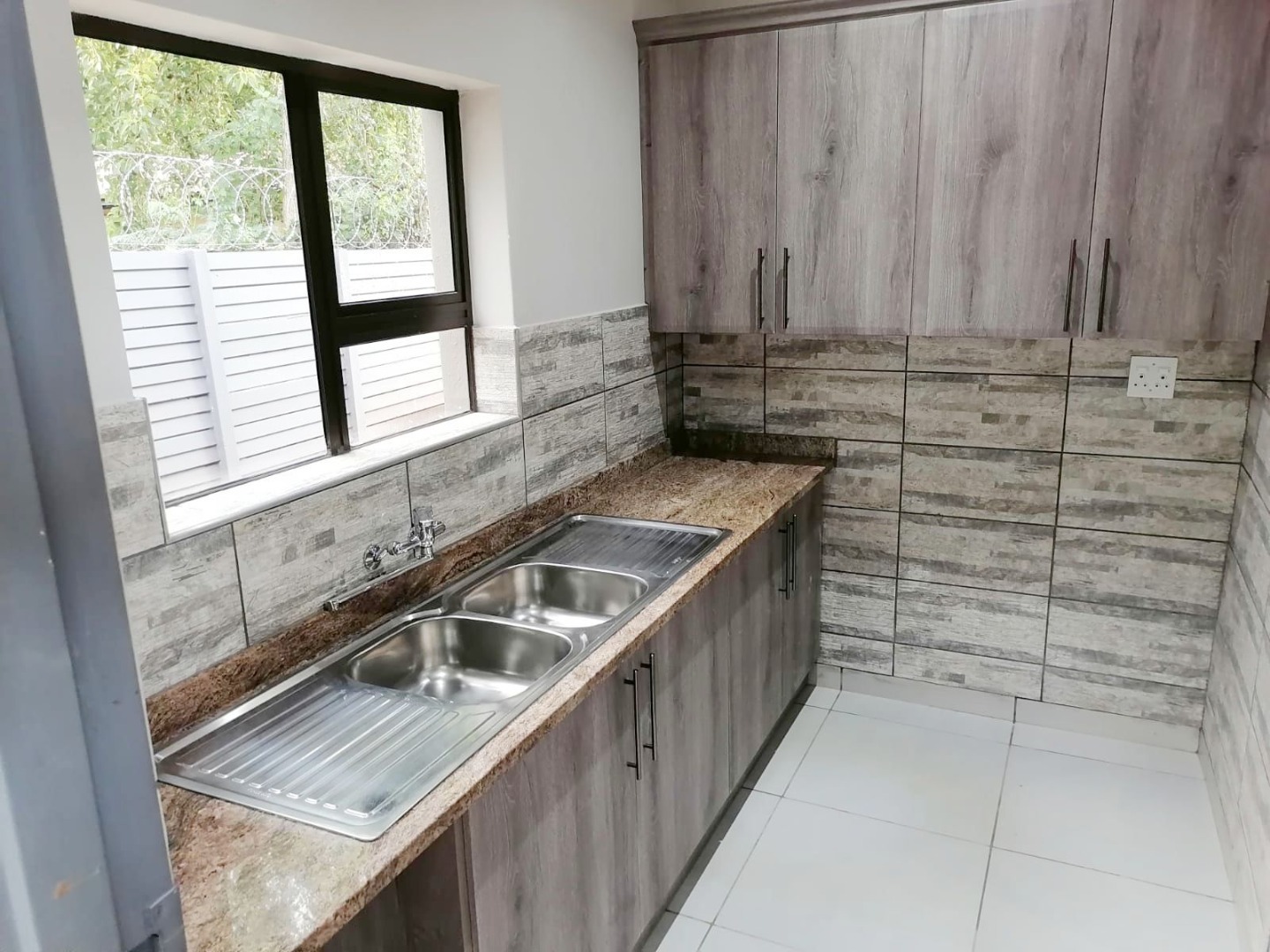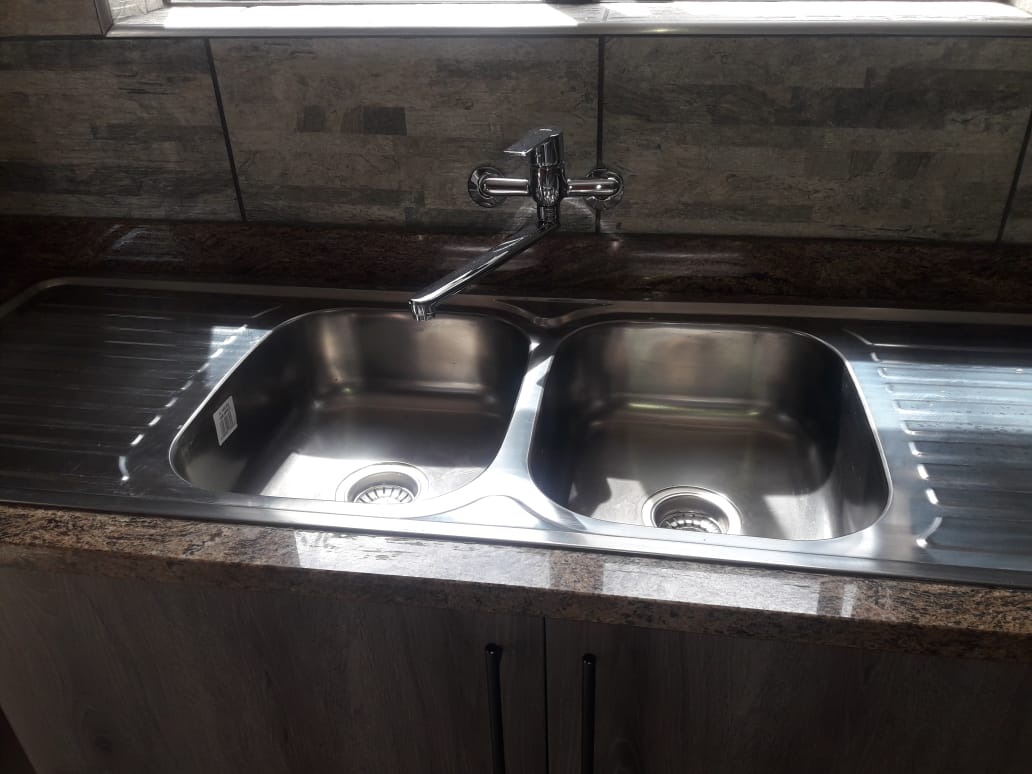 Outside is a double stainless steel zink for laundry.