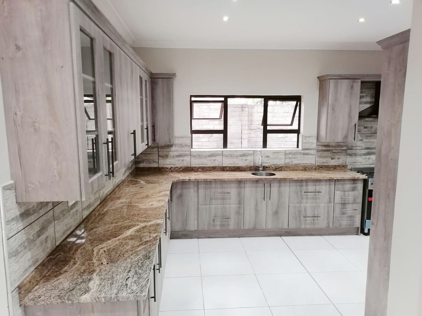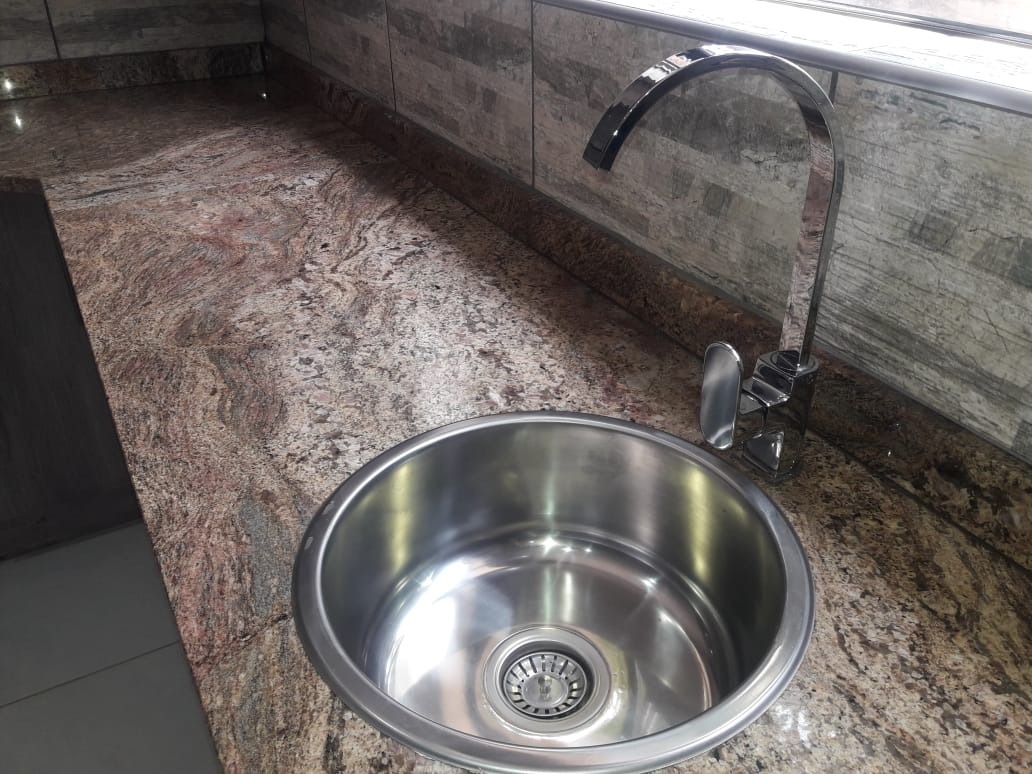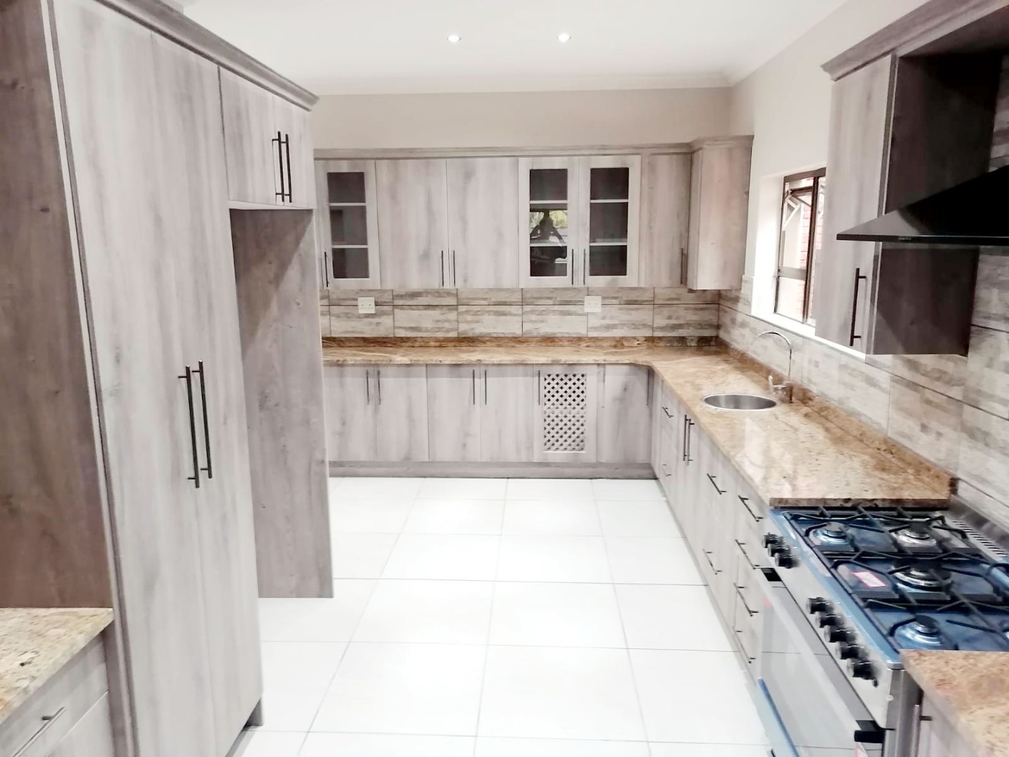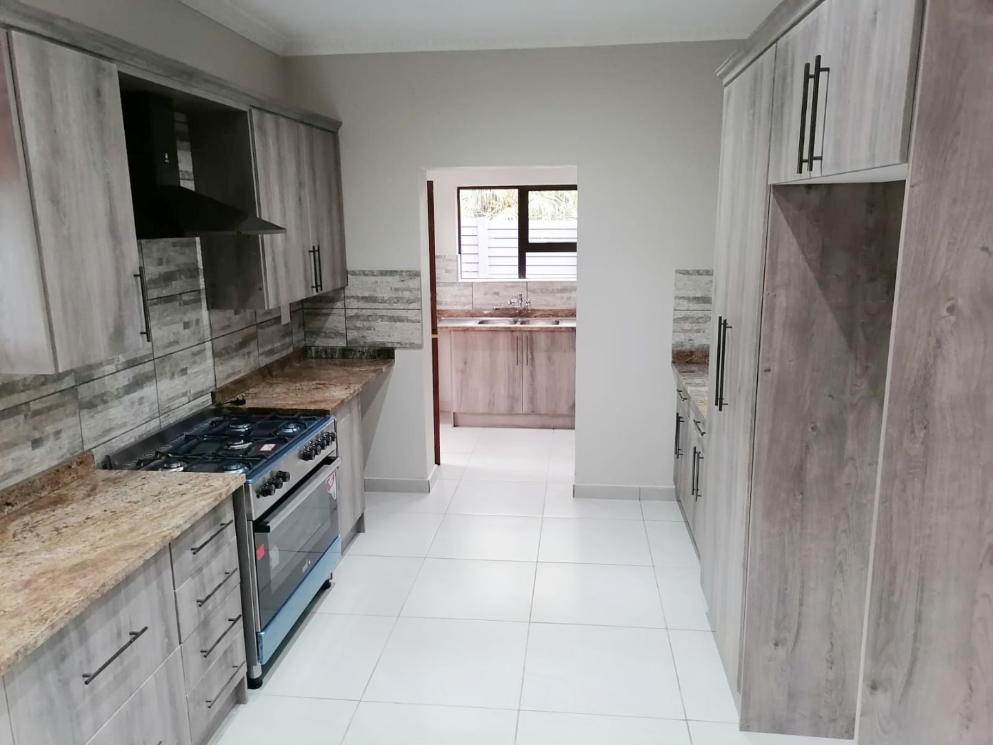 The kitchen is fitted with a gas stove, granite service tops, rap doors and has a separate scullery.